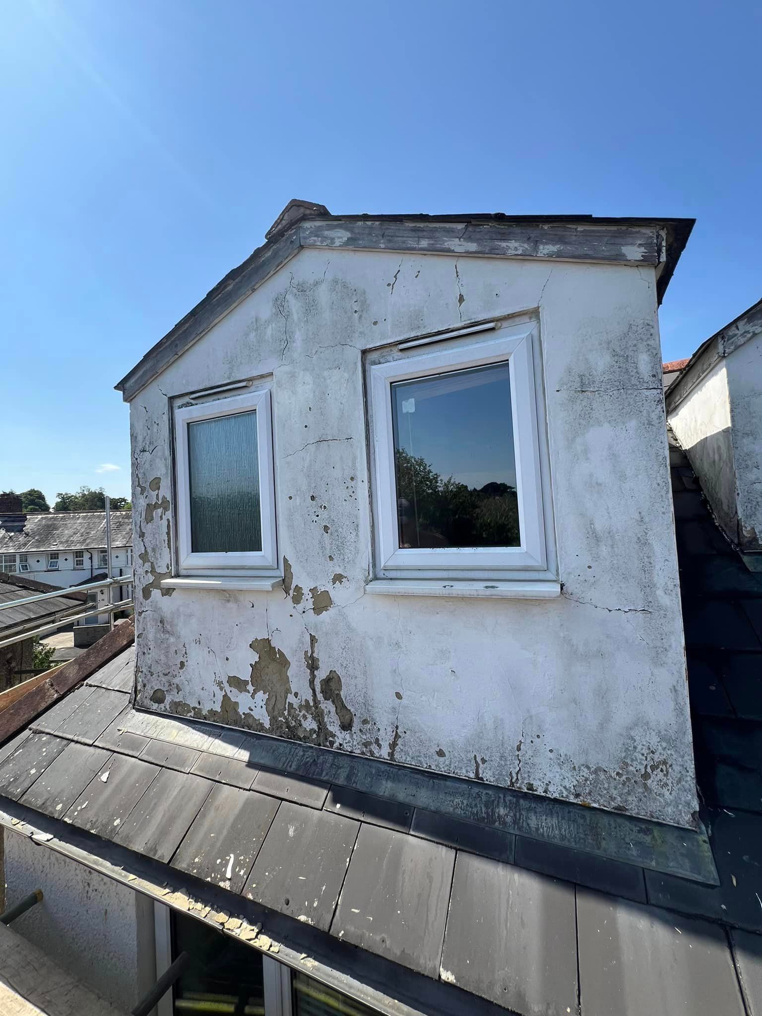 - Dormer Refurbishment: The dormers were stripped back to the rafters and reboarded. New felt and lead flashings were installed to prevent leaks. Finally, we applied fresh white PVC cladding, giving the dormers a sleek, modern look.